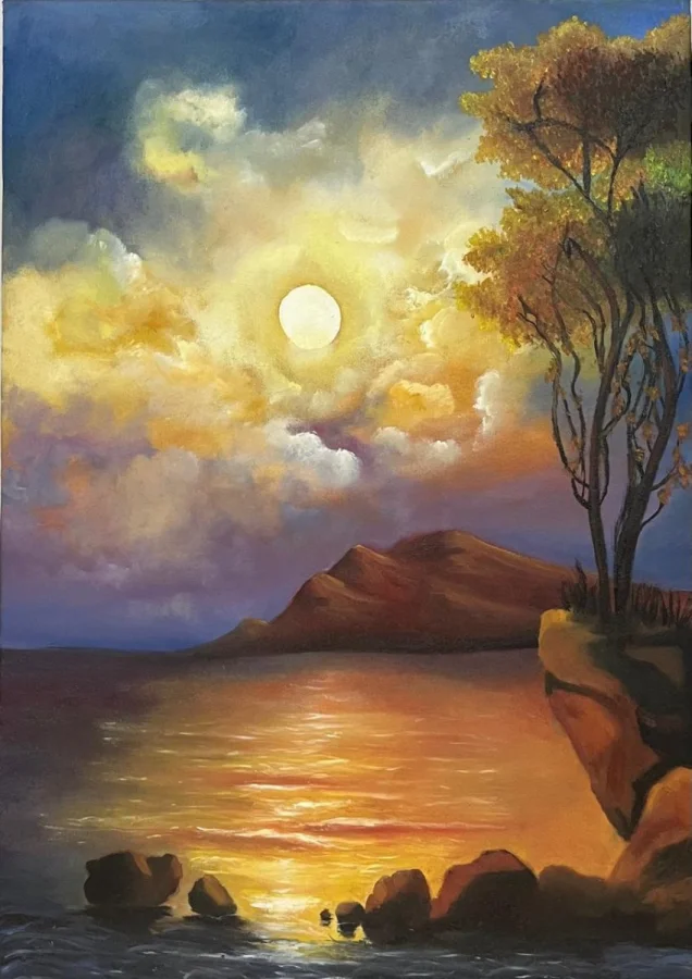 I like drawing landscape my fav is sunset. I draw in oil
