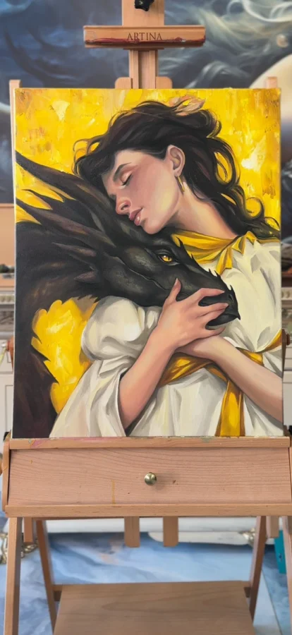 Je suis artiste tatoueuse depuis 10 ans et je travaille à l’huile depuis 10 mois, j’essaye de transmettre les émotions qui m’habitent au travers d’œuvre représentant des femmes et leur animal totem dans un univers féerique et vaporeux. Vous pouvez également me suivre sur les réseaux avec mon nom Delia Brody Tattoo